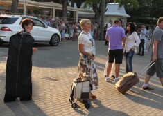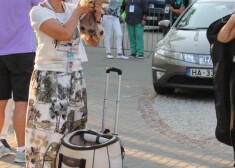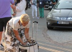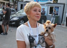 Krievijas šansonu dziedātāja Ļubova Uspenska uz „Jauno vilni” atbraukusi ar savu Jorkšīras terjeru Frenku Sinatru.