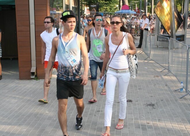 Ja runā par konkursa aizkulisēm, tad jāsaka, ka „Jaunā viļņa 2014” trešā diena bija zīmīga ar to, ka uz konkursu bez pavadones, proti, sievas Allas Pugačovas, ieradās Krievijas parodiju meistars Maksims Galkins. Ja ar Allu pie sāniem viņš ir kluss un, ja tā var izteikties – zemāks ar zāli, tad vakar viņš bija burtiski atplaucis. Pēc ierašanās viņš sasveicinājās ar ļaudīm, kuri aiz žoga noskatās Krievijas zvaigžņu ierašanos, pēc tam izpildīja vien sev saprotamus dejo soļus, un tad sāka fotografēties kopā ar teju vai visiem konkursa apmeklētājiem.