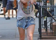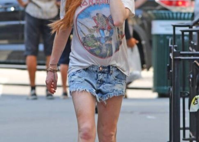 Pastaigai Ņujorkas ielās Lindseja Lohana izvēlējusies T-krekliņu ar grupas „Iron Maiden” logotipu. Topiņu aktrise daļēji bija ielikusi īsajos džinsā šortiņos, kas atsedza viņas zilumiem un saskrāpējumiem klātās kājas. Šoreiz gan jāatzīst, ka hematomas uz Lindsejas kājām nav vētrainas ballītes sekas, kā to varētu padomāt, zinot aktrises dzīvesveidu. Milzu zilumā Lohana iedzīvojusies pēc kritiena no velosipēda, par ko viņa pavēstījusi arī saviem „Instagram” bloga sekotājiem.