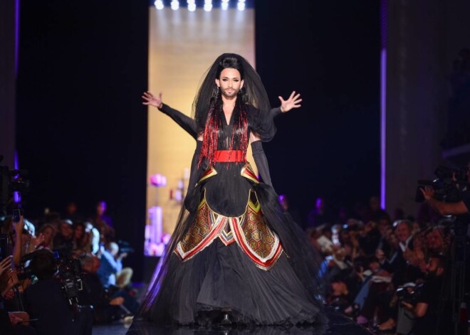 Bārdainā Končita, kas Eirovīzijā pārstāvēja Austriju, bija pēdējais modelis franču zīmola 2014.gada rudens sezonas „haute couture” modes skatē.