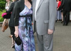Zane Vaļicka tērpusies efektīgā kleitā, kas pilnībā atsedz kailo muguru, ko apskatīt var visi, bet glāstīt tikai vīrs Gundars Pētersons.