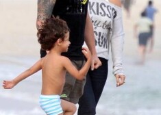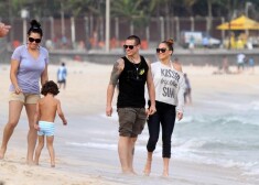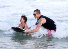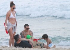 Bikini tērptā Lopesa kopā ar draugu pludmalē rotaļājas ar bērniem