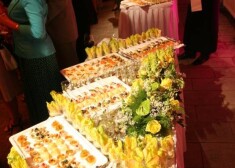 Svinību viesi tika cienāti ar dažādām aukstajām uzkodām, malkoja vīnu un šampanieti. Pasākuma viesu vidū varēja manīt Latvijas Nacionālās operas direktoru Zigmaru Liepiņu ar kundzi dziedātāju Mirdzu Zīveri, Eiropas Parlamenta ievēlētā deputāti Ivetu Griguli ar meitu, eksprezidentu Valdi Zatleru ar kundzi Lilitu, Latvijas Pašvaldību savienības priekšsēdētāju Andri Jaunsleini, SIA „Alfor” valdes priekšsēdētāju un mākslas mecenātu Jāni Zūzānu ar kundzi, arhitekti un politiķi Inesi Aizstrautu un daudzus citus sabiedrībā zināmus ļaudis. Pasākuma viesi lielākoties laiku vadīja sarunās, un neilgi pirms pusnakts svinības jau bija noslēgušās.