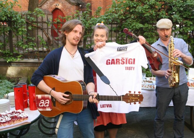 2014. gada 24. aprīlī grupa „Aarzemnieki” pirms izlidošanas uz Kopenhāgenu Dānijas vēstniecībā Latvijā dārzā rīkoja preses konferenci.