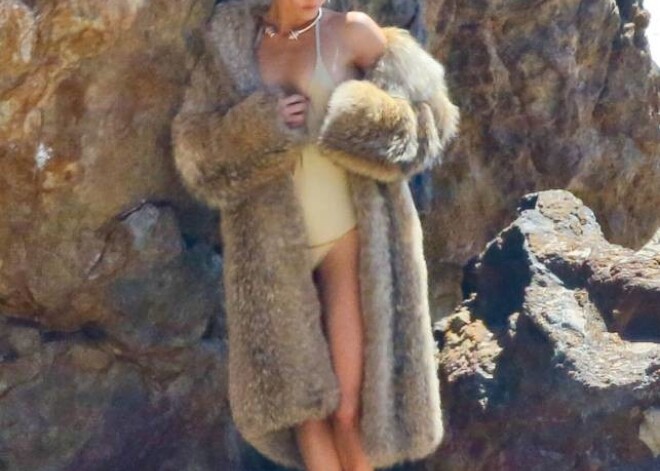 Vanesa Paradī virs peldkostīma velk kažoku! FOTO