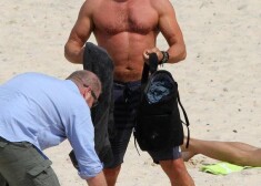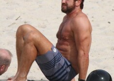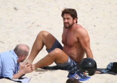 Džerards Batlers parāda muskuļus. Pludmales FOTO