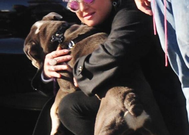 Kellija Osborna samīļo savu suni. Viņš izglābis tai dzīvību. FOTO
