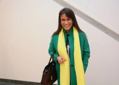 Zaļi zābaciņi, zaļš mētelītis un spilgti dzeltena šallīte – dzīvespriecīgs un krāšņs komplekts bija Aleksandrai Kurusovai aizvadītajā nedēļā, kad laukā uzspīdēja pavasarīga saulīte.