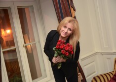 Viesnīcā „Grand Palace Hotel” notika modes dizaineres Kristīnes Deimones vakarkleitu kolekcijas skate. Tērpu demonstrētāju vidū koši sarkanā kleitā mirdzēja modele Lingita Lina Bopulu.