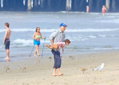 Vēlāk gan „cietais rieksts” atviegloja sievas soli, paņemdams pludmales somu.