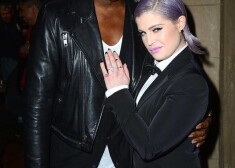 Kellija Osborna tērpjas uzvalkā un sien tauriņu