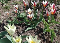 Tulpju dārzs pašu spēkiem ierīkots veca ābeļdārza vietā. Ap māju tīrījuši zemi no stikla lauskām, citām drazām, un ir diezgan skaidrs, ka zeme vēl ilgi laiku pa laikam izstums virspusē vēl kādu stikla vai metāla gabalu.