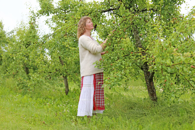 Bet augļu koku dārza stāsta sākums bijis vēl deviņdesmito gadu beigās, kad Dace iepazinās ar savu nākamo dzīvesdraugu un nolēma palikt kopā. Kā atklājās, katrs savā sirdī bija lolojis sapni par kārtīgu augļu dārzu. “Tirgū dienas laikā nopelnīju simts latus no vienas pašas bumbieres ražas, un tā taču liela nauda! Nodomāju – tur kaut kam apakšā ir jābūt.