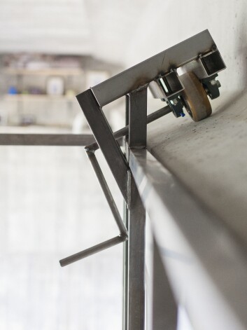 Viss ģeniālais patiešām ir vienkāršs, jo, ar rokām griežot šos ritenīšus, var aizbraukt, no tilta viena gala līdz otram. Šādā veidā platforma sasniedz tilta balstu, pie kuras piestiprināts galds un daži plaukti.