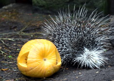 Pēc uzvarētāju paziņošanas un apbalvošanas ar ķirbi kā kārumu launagā mielojās degunlāču ģimene.