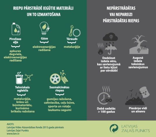 Turklāt ne visi pārstrādes veidi ir noderīgi, lai ilgi glabātās riepas varētu pārstrādāt, jo daļai jau ir bojāta gumijas struktūra, vienkārši sakot, tās ir sapelējušas. Protams, arī šādām riepām ir iespēja atrast izmantojumu vai pārstrādes iespējas, taču tas būs krietni dārgāk, bet labuma – mazāk.