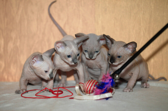 Ir divu veidu bezspalvu kaķi: tā sauktie gumijotie – vispār bez spalvām – un velūra kaķi, kuriem ādiņu klāj mīksta matiņu kārtā kā samts.