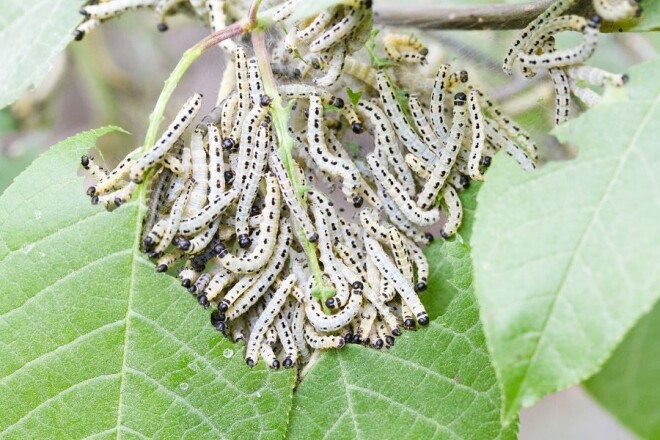 Ievas un augļkokus daudzviet Latvijā pārņēmuši tīklkožu kāpuri – gan parkus Rīgā, gan dārzus.