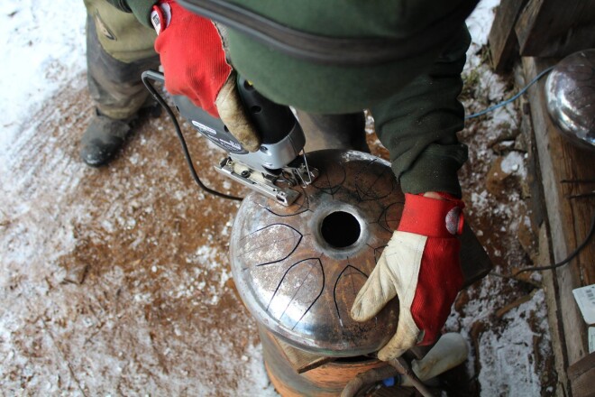 Pie savas idejas viņš nonāca, ieraugot televīzijā ielu muzikantu, kurš spēlēja uz pieclitrīgā gāzes balona, kam apakšā bija izgrieztas mēlītes. Sekoja rakšanās internetā, pamācību video, apraksti, daudzi mēģinājumi, līdz tapa pirmā zvanga, kas uzdāvināta dzīvesbiedrei.