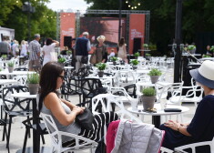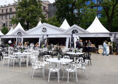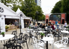 Laukumā pie Latvijas Nacionālā mākslas muzeja atvērts XXVI Vispārējo latviešu Dziesmu un XVI Deju svētkiem veltīts "Live Rīga Dziesmusvētku restorāns".