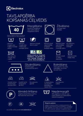 Vai pirms veļas mazgāšanas un žāvēšanas rūpīgi izpēti apģērbu kopšanas simbolus uz etiķetes, vai arī esi viens no tiem, kas par simboliem neliekas ne zinis un etiķetes nogriež pie pirmās izdevības? Sadarbībā ar sadzīves tehnikas zīmolu Electrolux apkopojām populārākos apģērbu kopšanas simbolus, kurus noteikti būsi redzējis, taču iespējams tev nebija ne jausmas, ko tie nozīmē.
