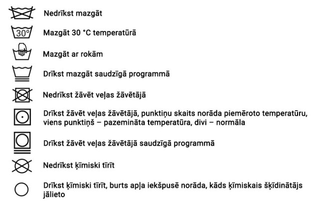 Tāpēc pirms jebkura izstrādājuma mazgāšanas ieteicams rūpīgi iepazīties ar konkrētā izstrādājuma kopšanas norādījumiem, ko ražotājs norādījis etiķetē. Apģērbu mazgājot piemērotā temperatūrā, tas ilgāk saglabās savu krāsu un kvalitāti un auduma šķiedras nezaudēs formu.