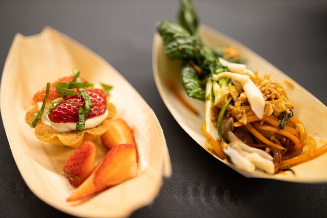 Zommers demonstrē un pastāsta par gatavošanas procesu: “Visām ēdienu sastāvdaļām ir jābūt maksimāli vienādās proporcijās, precīzi sagrieztām līdzīgās frakcijās, lai gatavošanas procesā viss vienlaikus būtu gatavs. Tad uzkarsējam pannu un uz tās liekam nepieciešamās sastāvdaļas. Garneles ar iepriekš kaltētām uzbriedinātām gailenēm, cukīni, plāni grieztu kabaci un, protams, nūdeles. Savukārt, gatavojot jūras ķemmītes, tām pievieno plāni grieztus burkānus, garšaugus un zaļumus. Vok ēdiena garšas nianses var mainīt atkarībā no tā, kādas vok mērcītes tiek pievienotas, šajā gadījumā izmantoju tarijaki mērci. Vēlamo aromātu un garšas nianses šādos ēdienos var piešķirt ar maigākām vai asākām garšvielām, bet lielisks palīgs ir gatavās vok mērces, kas padara ēdienu vēl sulīgāku un smaržīgāku,” stāsta šefpavārs.