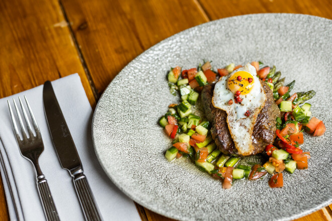 Restorāns mājās! Zommers iesaka - steiks ar paipalu olu un sparģeļiem