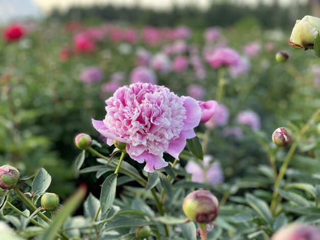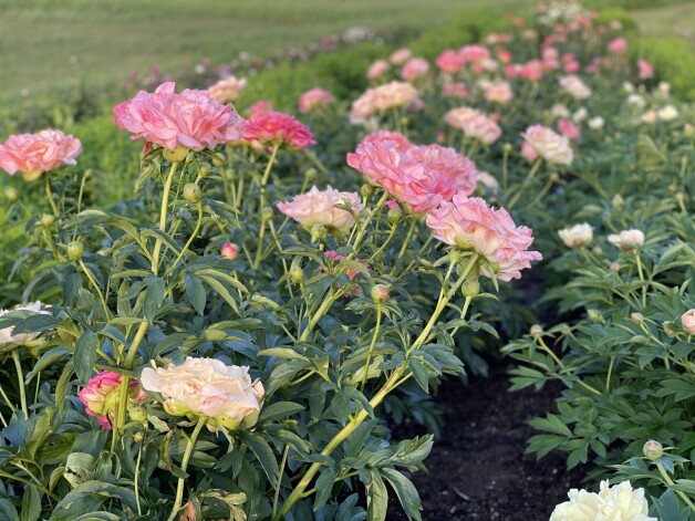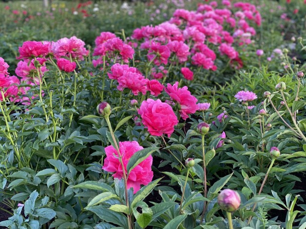 Peoniju krāšņums stādu audzētavā "Jaunrūjas" Cēsu pusē