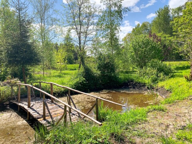 Mājai blakus ir dīķis ar iespējām to paplašināt.