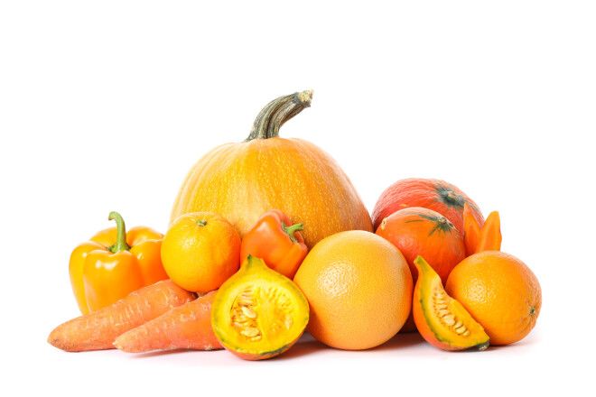 Populārākie oranžie dārzeņi un augļi ir ķirbji, burkāni, apelsīni, aprikozes, mango, mandarīni, oranžā paprika un oranžie tomāti; no ārstnieciskajiem augiem – kliņģerītes, kreses, samtenes; no garšvielām – kurkuma un safrāns.