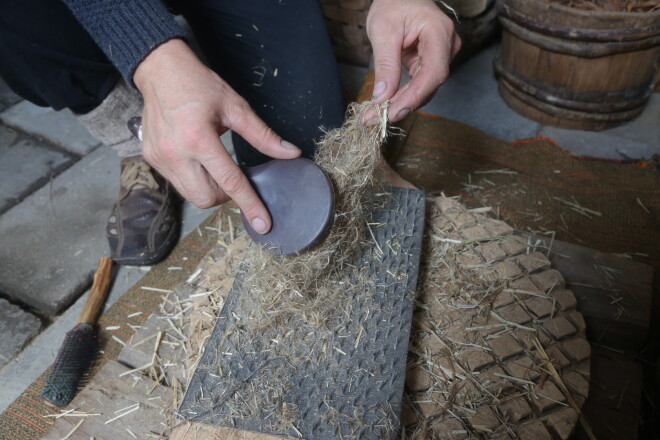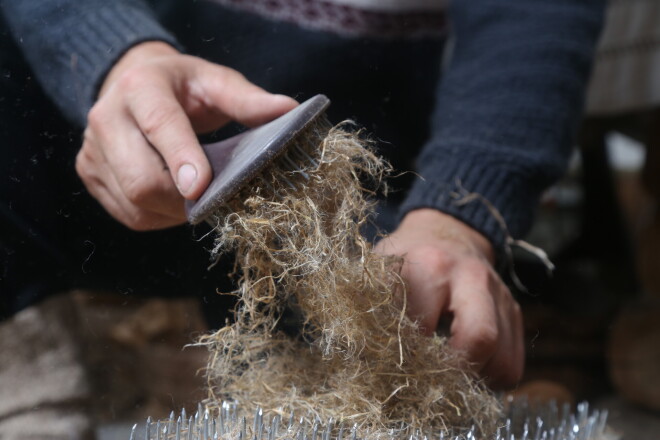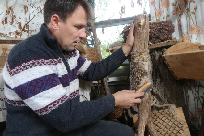 Kūlas cimdi, egļu deķis. Ciemojamies Barkavā pie koku vilnas meistara Ritvara Toča