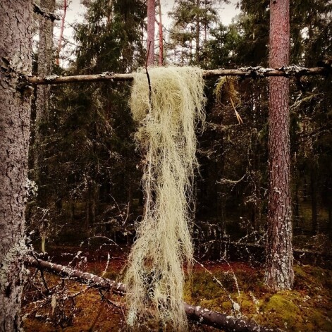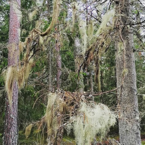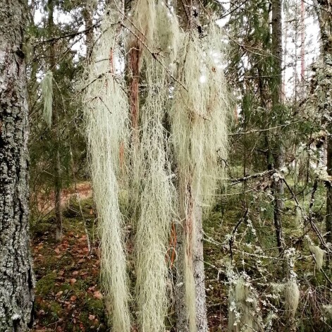 Ginta Kalniņa no Viļķenes tādus brīnumus ieraudzījusi Ķirbižu mežā. Varētu domāt, ka rūķu bārdas – šis dabas pārsteigums ir smalkmatainā briorija (Bryoria capillaris) – ķērpju suga, turklāt ļoti tīra gaisa indikators.