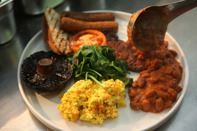 Ir vēl divas lietas, bez kurām angļu brokastis nebūtu īstas brokastis. Pirmkārt, tās ir ceptas pupiņas tomātu mērcē. Mūsdienās tās pārdod konservu bundžās, uzsilda un pasniedz uz grauzdētas maizes šķēles vai arī kā piedevu desiņām, olām un šķiņķim.