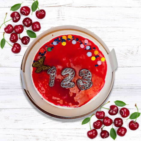 Jogurta – ķiršu tortē vieglo, gaisīgo jogurta garšu bagātina sulīgo ķiršu pildījums. Šī torte ir domāta īstiem izsmalcinātu saldumu mīļotājiem – torte ar augstas kvalitātes izejvielām un rokām darinātiem dekoriem.