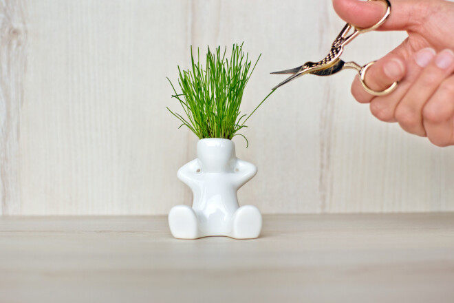 Stādīt puķes galvā? Šobrīd ļoti populāri ir cilvēka galvas formas puķu podi