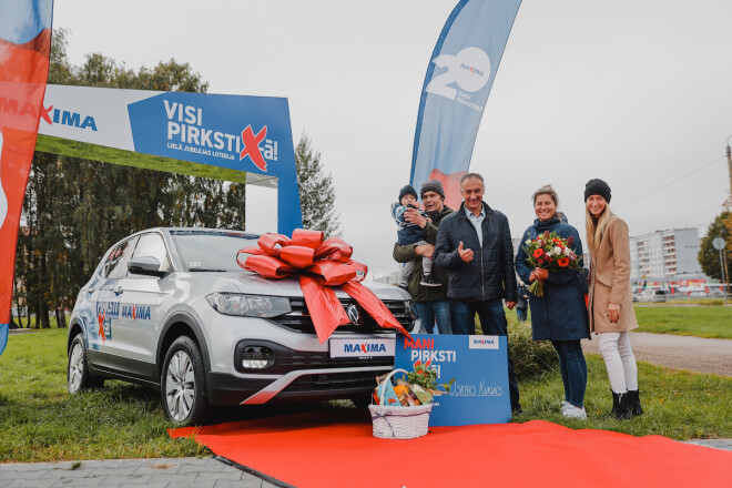Vērienīgajā “Maxima Latvija” divdesmitgades loterijā katru nedēļu laika posmā no 21. septembra līdz 29. novembrim tiek izlozēta viena automašīna – jauns Volkswagen T-Cross krosovers.