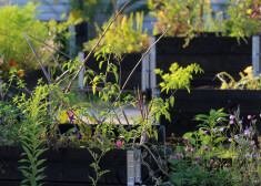 “Lepojāmies ar puķēm, īpaši kosmejām, bija arī ļoti smukas pelargonijas, alisītes un atraitnītes, kuras bija iecienījušas mūsu urbānās bites. Un vēl mūsu dārzā ir šeit pirmais rūķis jeb rūķene, jo šeit šiverējam trīs sievietes,” pasmaida Evija.