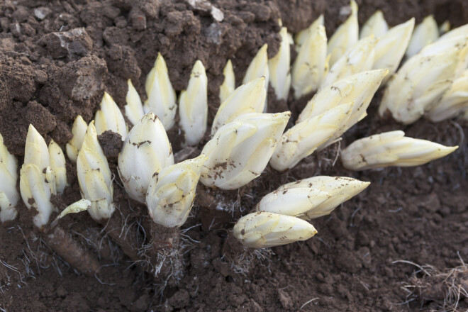 Cigoriņu saknes citu pie citas liec kastēs ar zemi un vismaz uz trim nedēļām noliec aukstā pagrabā pilnīgā tumsā. Tas ir ļoti svarīgi!