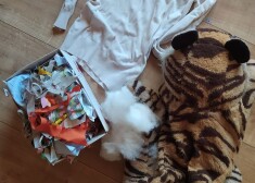Rotaļlietu darbnīcas "Minces un draugi" māksliniece Sintija Griška ar meitām Alūksnes dzīvnieku patversmei no otrreiz pārstrādājamiem materiāliem darina kaķu un suņu guļvietas.