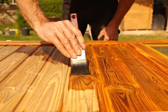 Kad koksne ir sausa, to droši var krāsot, izmantojot platu otu vai speciālu aplikatoru, ar izvēlētajā tonī ietonētu eļļu terasēm Pinotex Solar Terrace & Wood Oil. Tā ir īpaši izstrādāta eļļa uz ūdens bāzes. Sastāvā esošais vasks veido hidrofobu virsmu – virsmas pārklājums atgrūž mitrumu, līdz ar to aizsargā koksni pret pelējumu un plaisāšanas.