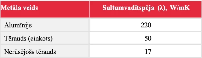 Alumīnijs ir 13 reizes vadošāks nekā nerūsējošais tērauds, tāpēc siltumizolācijas biezums ar alumīnija kronšteiniem ir vairāk jāpalielina, nekā izmantojot nerūsējošā tērauda nesošos elementus.