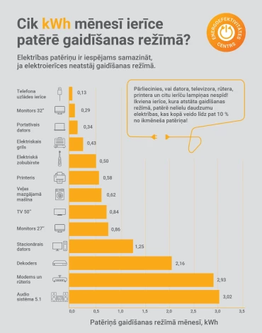 Lūk, cik kWh mēnesī gaidīšanas režīmā patērē dažādas ierīces: