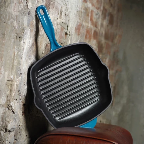 Izvēlieties grilpannu ar ērtu un izturīgu rokturi, kas ir droši piestiprināts pie pannas. Pārliecinieties, vai rokturis ir drošs izmantošanai arī cepeškrāsnī, ja plānojat izmantot grilpannu cepeškrāsnī vai uz atklātas uguns.