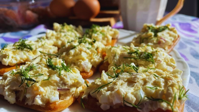 Šie salāti lieliski garšo kopā ar krekeriem – noderēs sāļo uzkodu platēm un omulīgiem vīna vakariem ar draugiem. Vajadzēs krēmsieru, vārītas olas, sviestu, sīpolu un garšvielas.