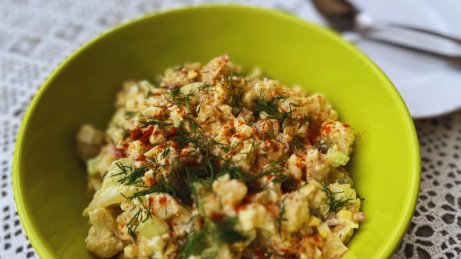 Ja jums garšo klasiskie vācu kartupeļu salāti, tad noteikti garšos arī šie! Vajadzēs vārītas olas, ziedkāpostu, marinētus gurķus, sarkano sīpolu, svaigus gurķus, kūpinātu bekonu, majonēzi, sinepes, etiķi, balto jogurtu, paprikas pulveri, dilles un citas garšvielas.