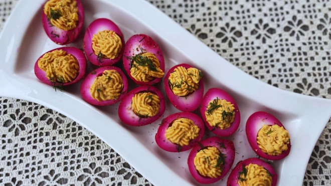 Marinēt var ne tikai gurķus, tomātus un citus dārzeņus, bet arī olas. Taču, pirms marinēt olas bietēs, jāatceras, ka jo ilgāk olas atradīsies marinādē, jo intensīvāki rozā tonī iekrāsosies un iegūs skābāku garšu. Vajadzēs vārītas olas, marinētas bietes, ābolu etiķi, brūno cukuru, rozā piparus, smaržīgos piparus, sinepes, majonēzi, olīveļļu, karija pulveri un citas garšvielas.