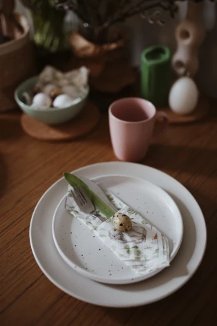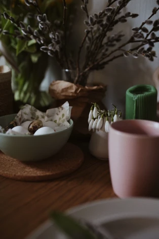 Aiga arī pievērš uzmanību tam, lai svētku noformējums būtu saskaņots ar telpu stilistiku. Viņa uzskata, ka viens no labākajiem rotājumiem ir pavasarim raksturīgie grieztie ziedi – tulpes, narcises. “Ziedi, manuprāt, ienes mājās pavasari un šogad tas ir īpaši nepieciešams, jo ziema nemaz nevēlas atkāpties.”
