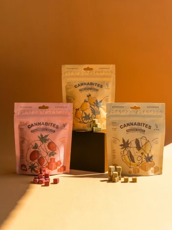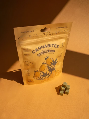 Cannabites uzkodas ir garšīga alternatīva CBD eļļām. Viens 5mg uzkodas kubiciņš ir vienāds ar 2 pilieniem Joy of Spring eļļas vai 2 Sixty Breaths kapsulām. Vienā iepakojumā ir 60 kubiciņi. Kaņepju veselīgos gardumus ir ērti nēsāt līdzi, lai tos baudītu jebkurā laikā. Turklāt ir trīs dažādas garšas – ananāsu, banānu un zemeņu.