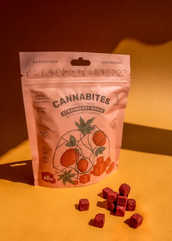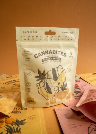 "Cannabites" ir no liofilizētiem augļiem un kaņepēm gatavota uzkoda, ko raksturo vērtīgas vielas un pievilcīgas garšas īpašības.